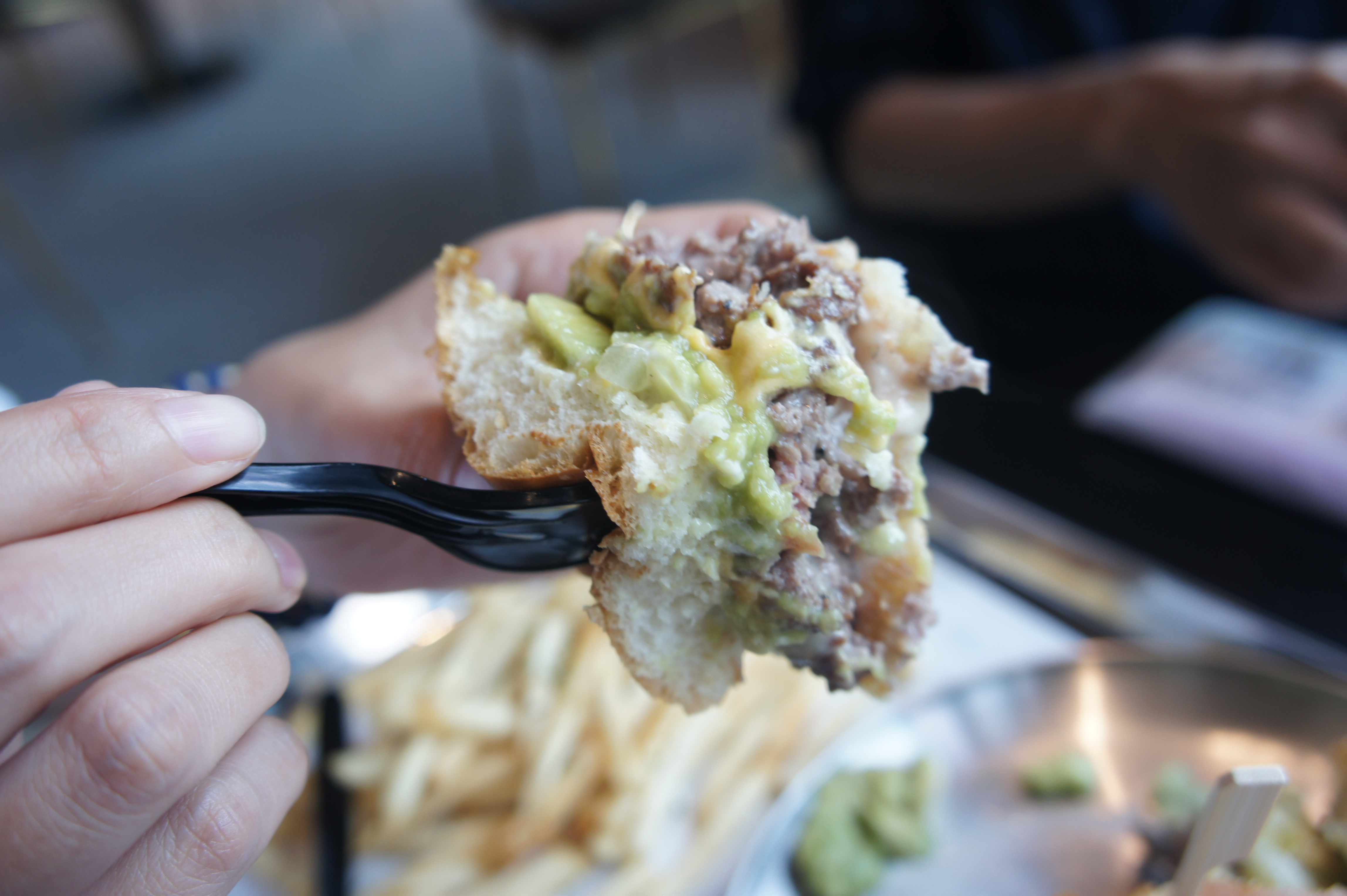 두툼한 패티에 과카몰리가 듬뿍 들어가 있다.