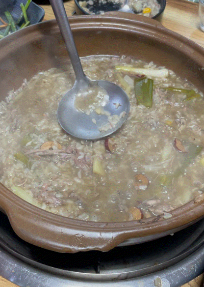 영양만점 오리백숙 죽이 완성됩니다.