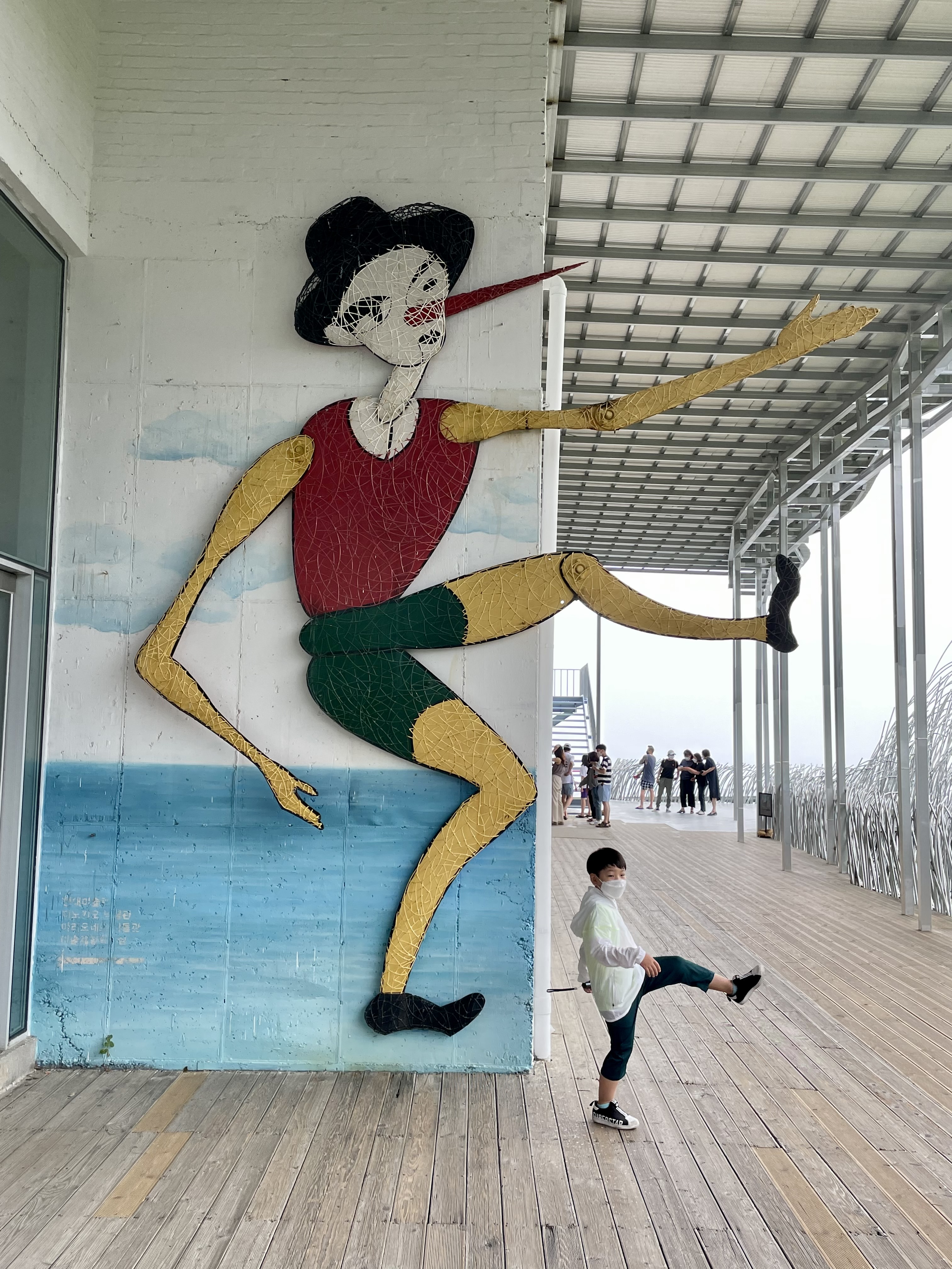 피노키오 조형물 뒤에 사람들이