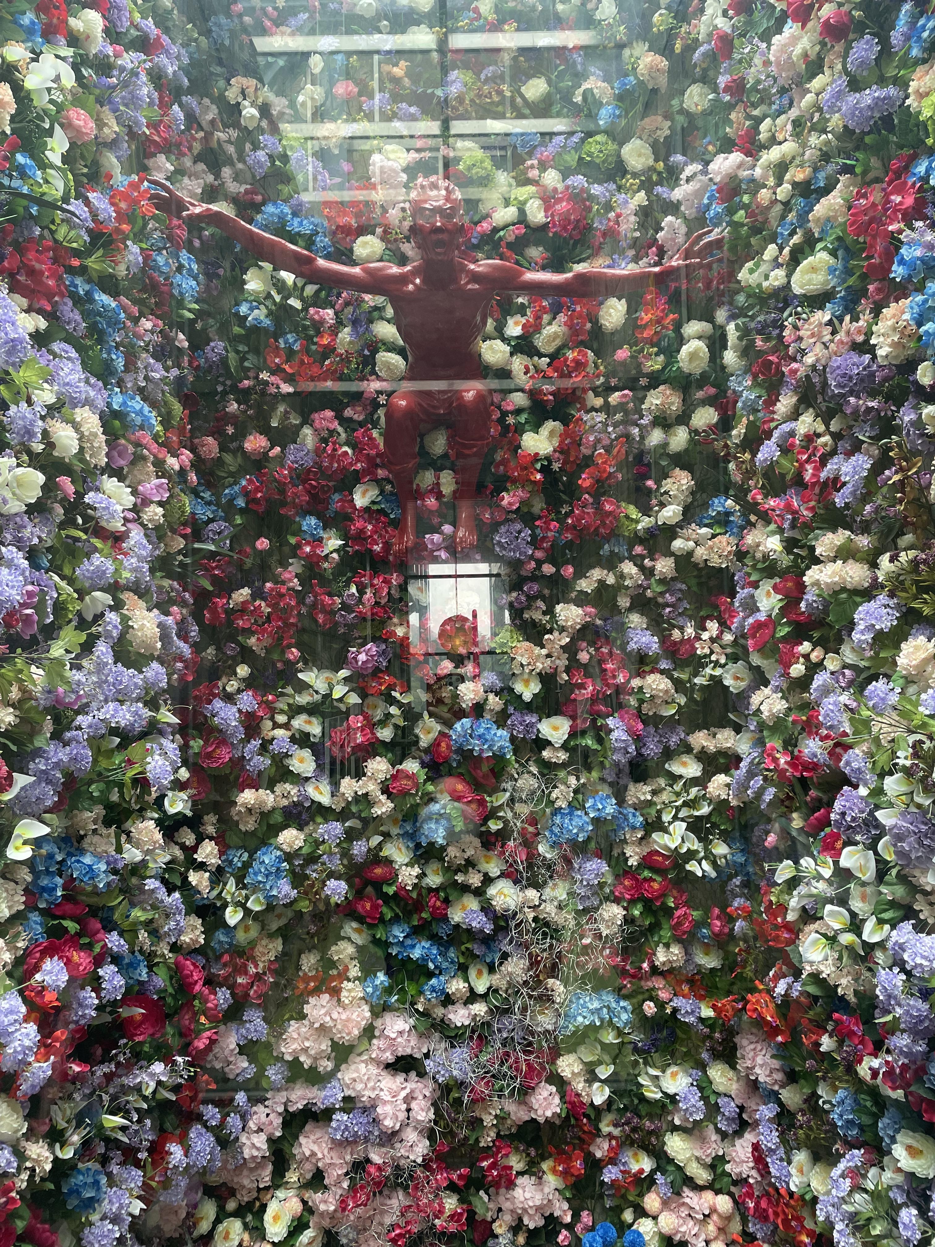 꽃이 가득한 작품 앞에서 가족사진도 찍었다.