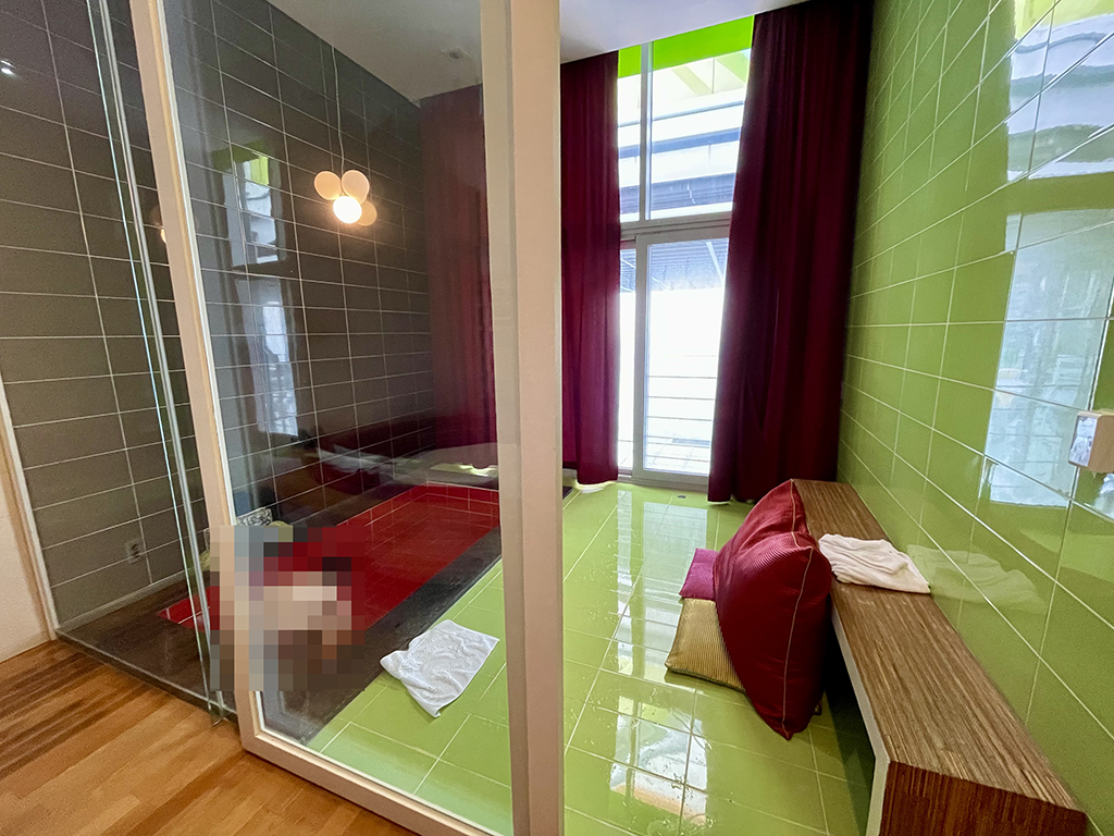 룸 내부는 침실과 욕조가 분리되어 있는 구조인데