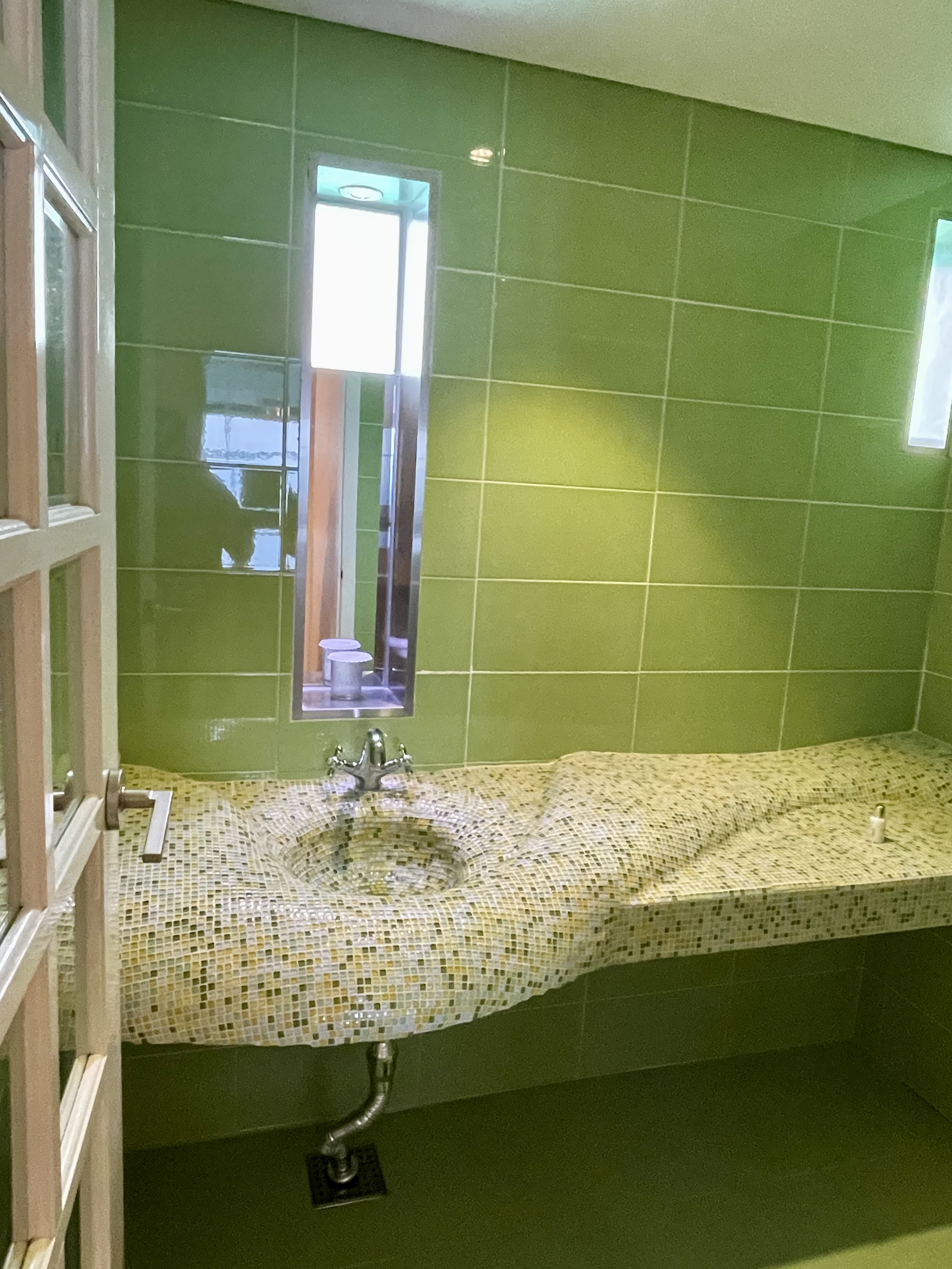 독특한 곡선 형태에 작은 타일로 꾸며져 있다.
