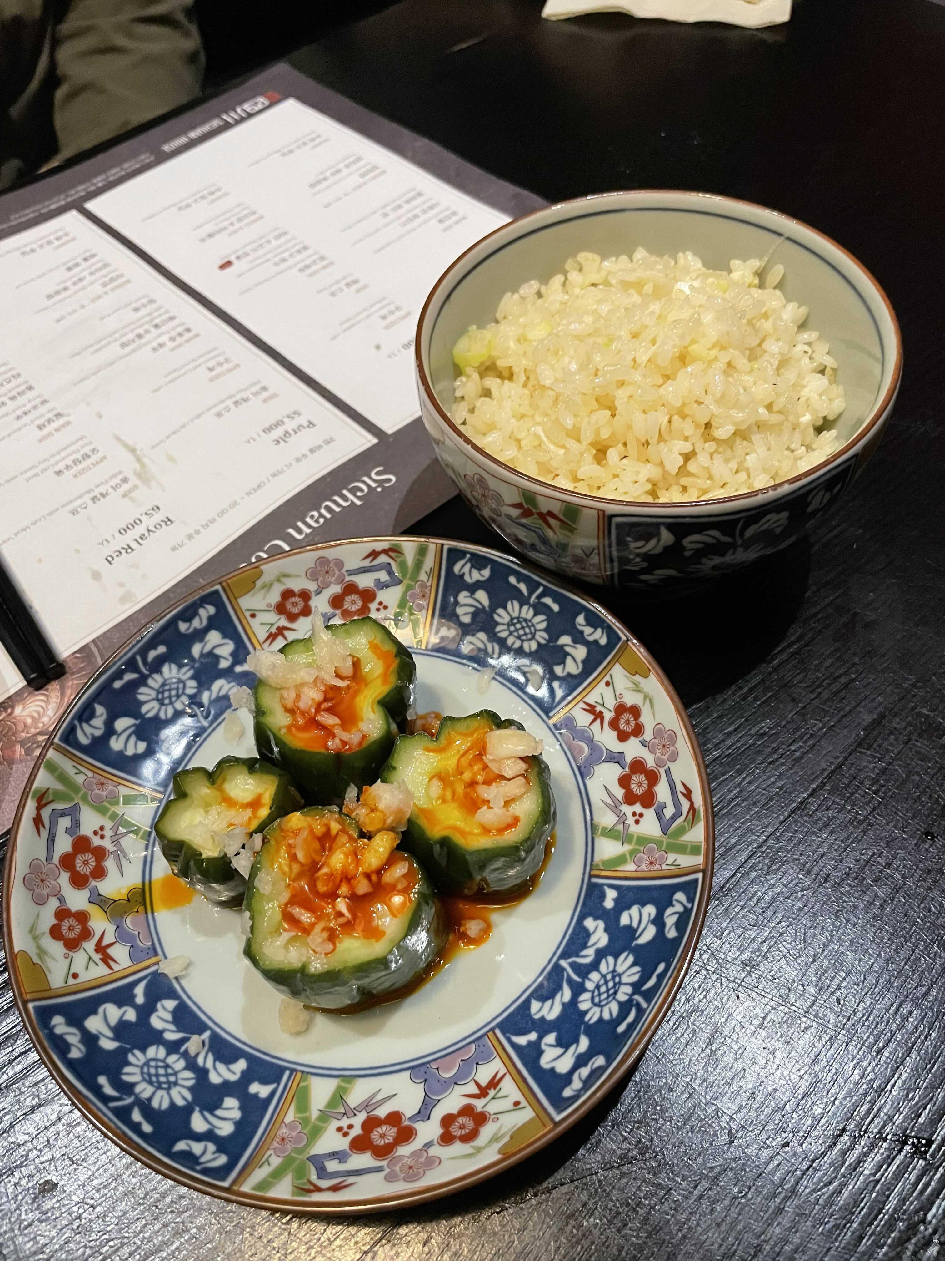 달걀 볶음밥과 오이소박이입니다.