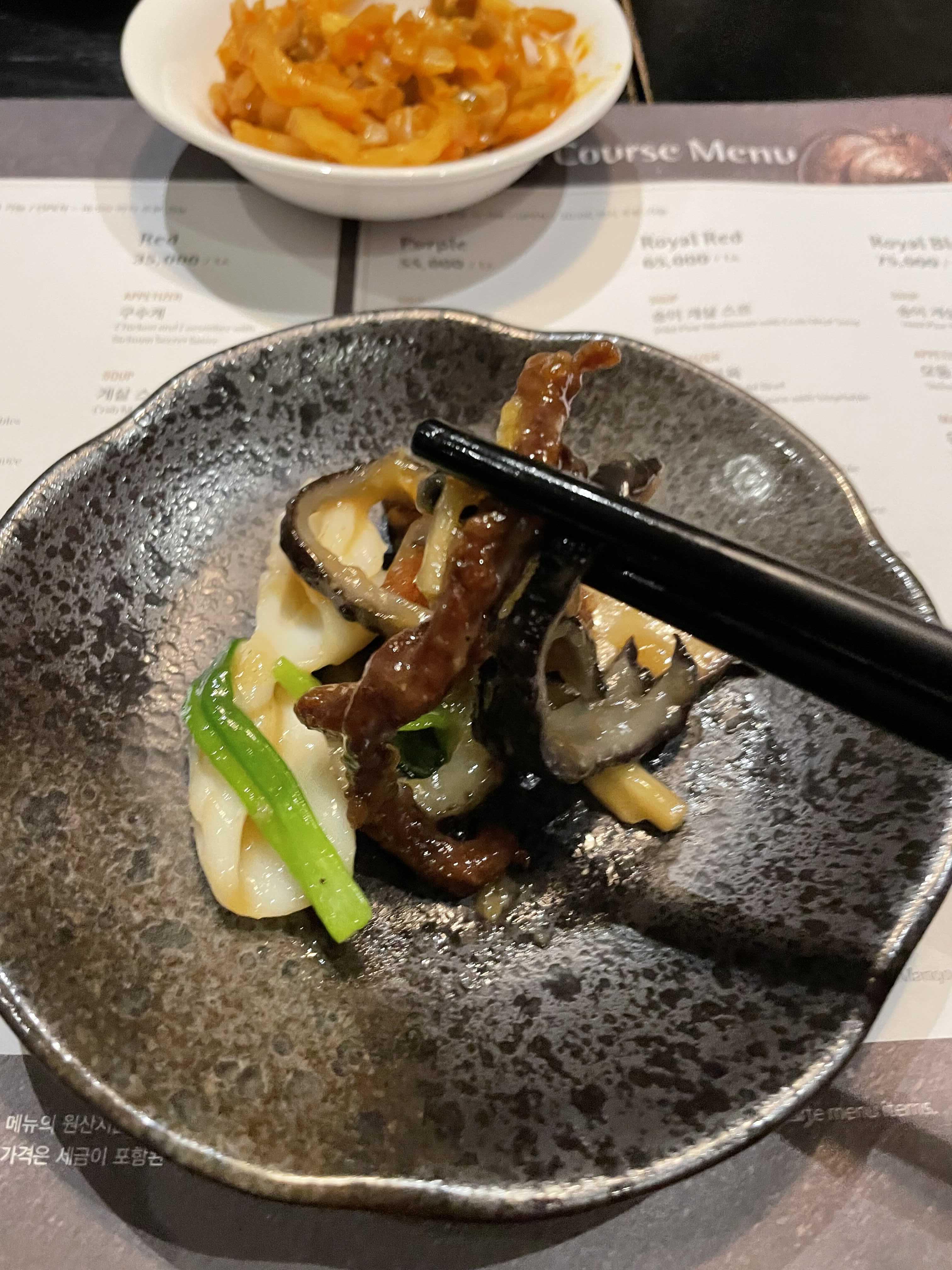 두 번째 나온 음식은 생표고 탕수인데